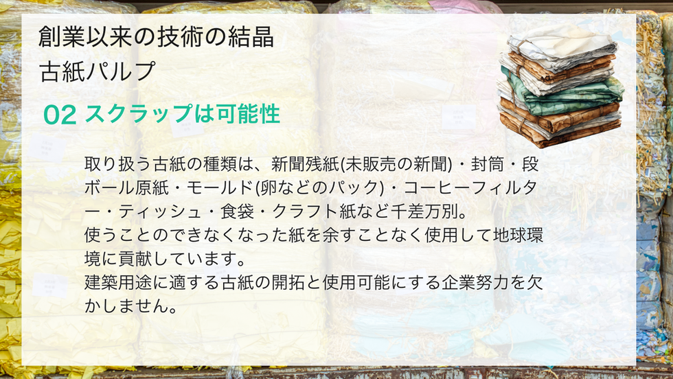 環境に配慮した「紙」と「建築」を結ぶ素材で社会に貢献する。